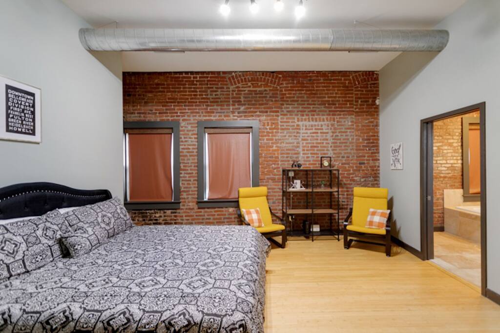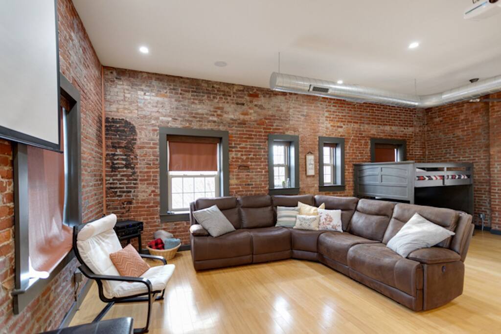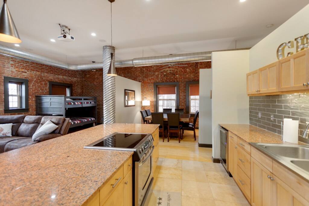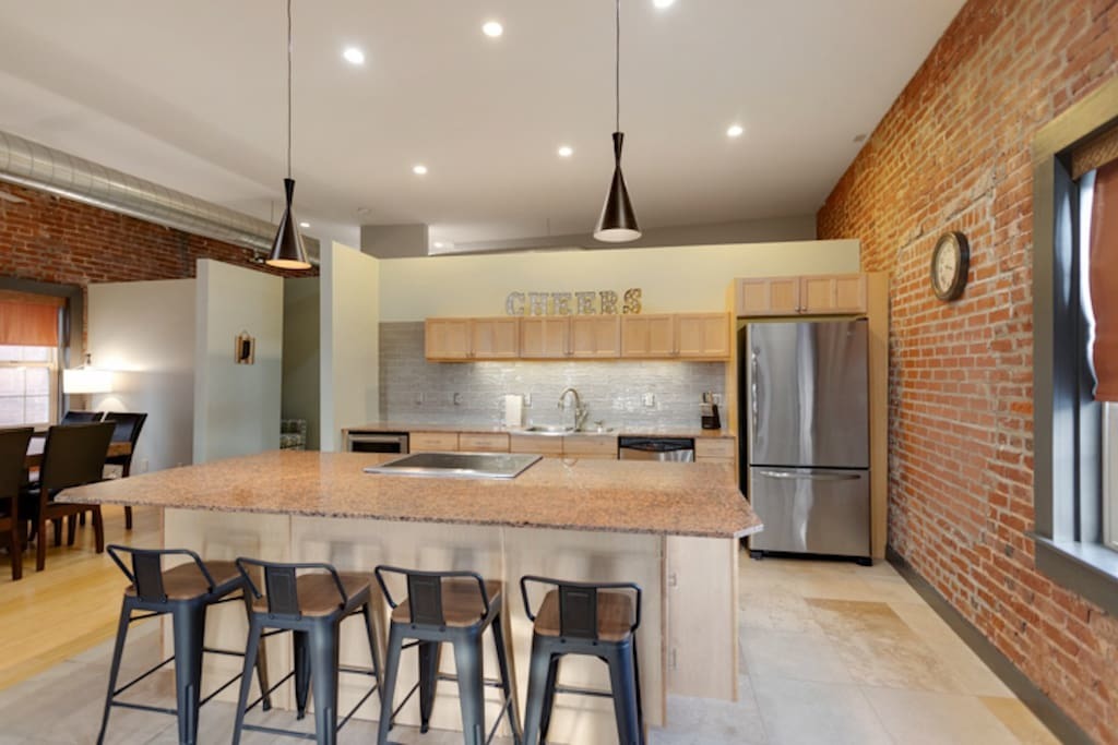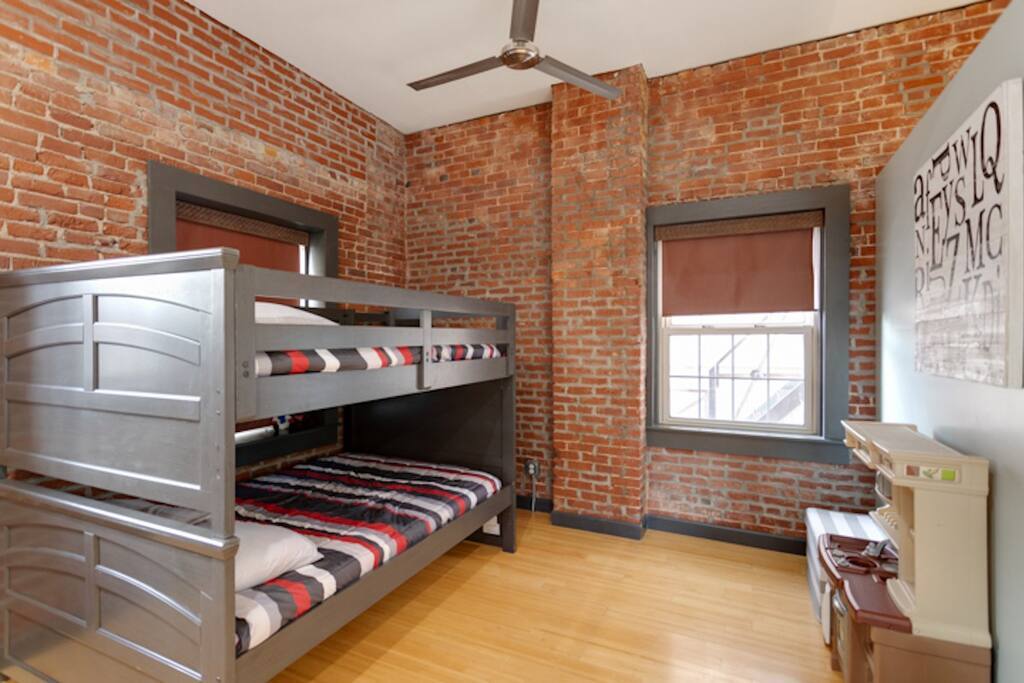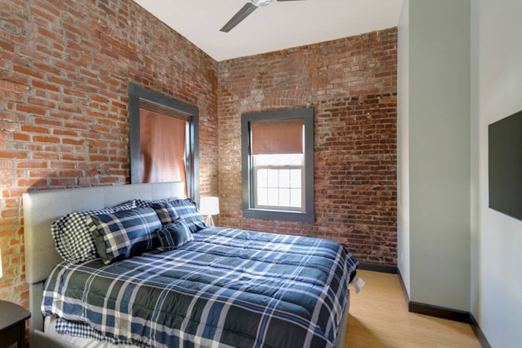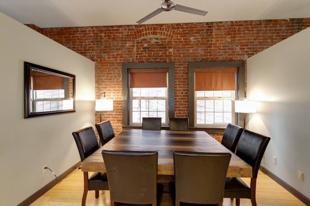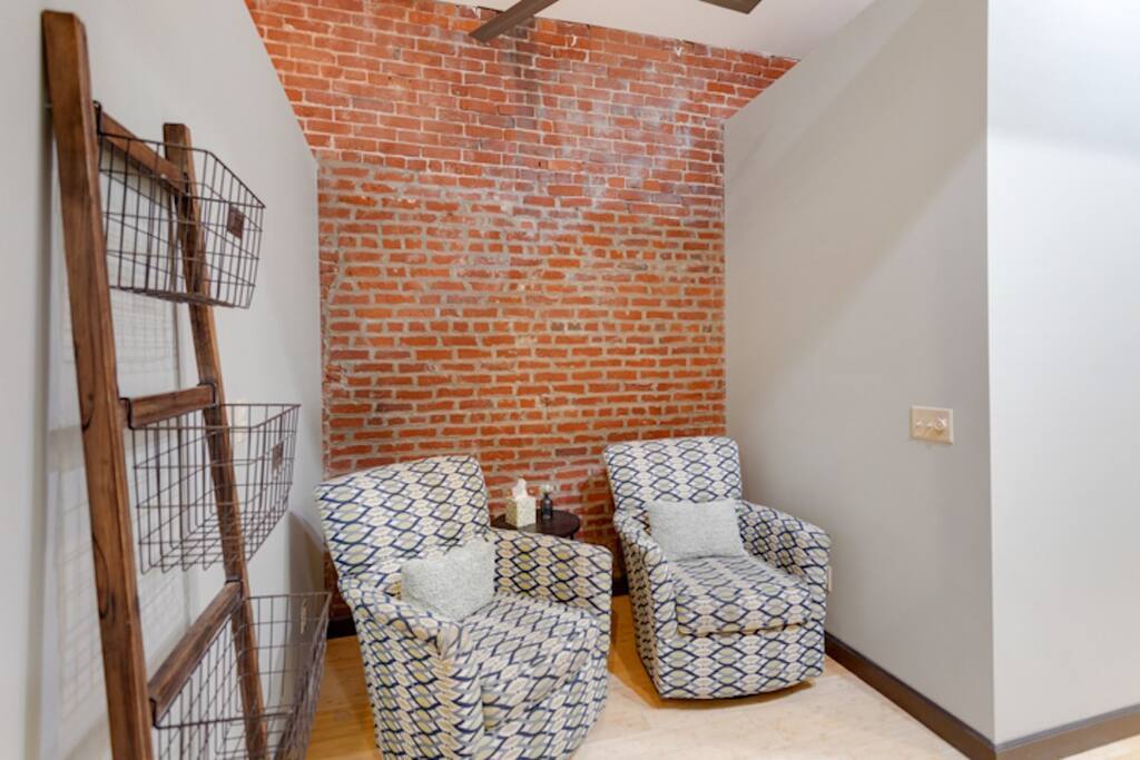 Welcome to the Dr. J.R. Mitchell House! Built in 1909 as what is believed to be the first animal clinic in Evansville, this century-old home has been renovated and modernized. Dr. Mitchell's owners' quarters above the original animal clinic now features two bedrooms, an open bunk room for kids, and three full bathrooms. You'll find the original exposed brick throughout the home which adds the perfect vibe to this modern industrial home.